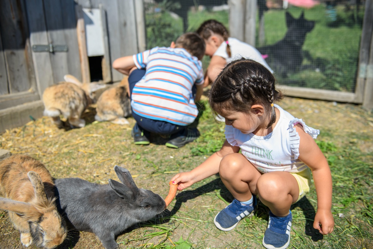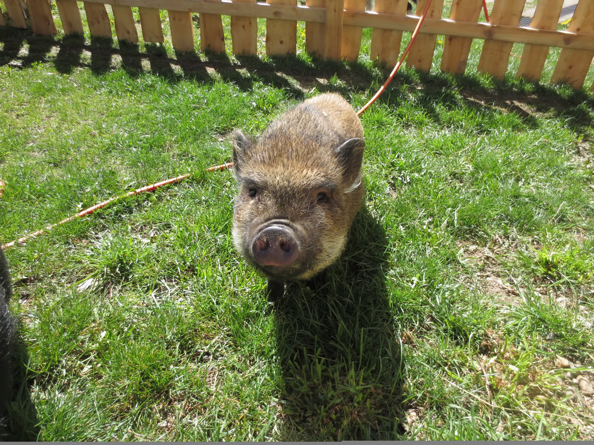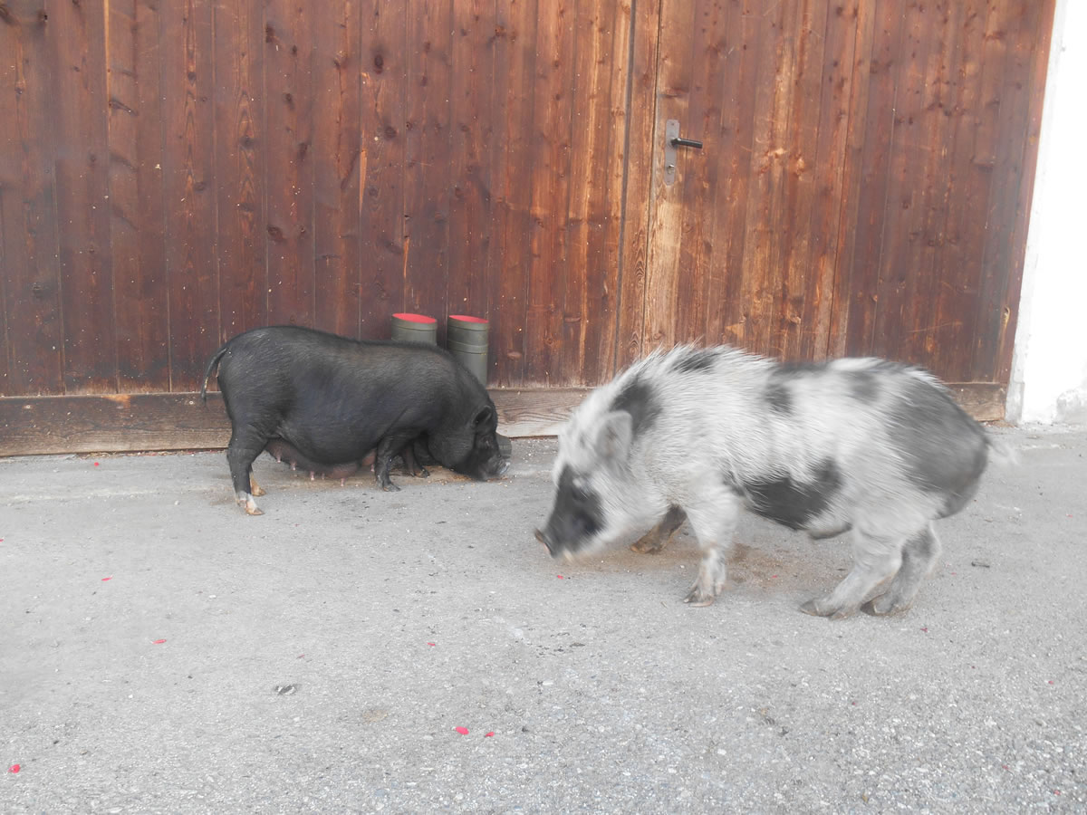 Unser Hof sollte hauptsächlich Erholungsziel für tierliebende Familien sein, denn es schauen hinter jedem Zäunchen andere Tiere hervor. So gibt es bei uns Ziegen, Hunde, Katzen, Minischweine, Enten, Hühner, Meerschweinchen, Kälbchen, Pferde, Pony, Hasen, Chinchillas und Schildkröten.